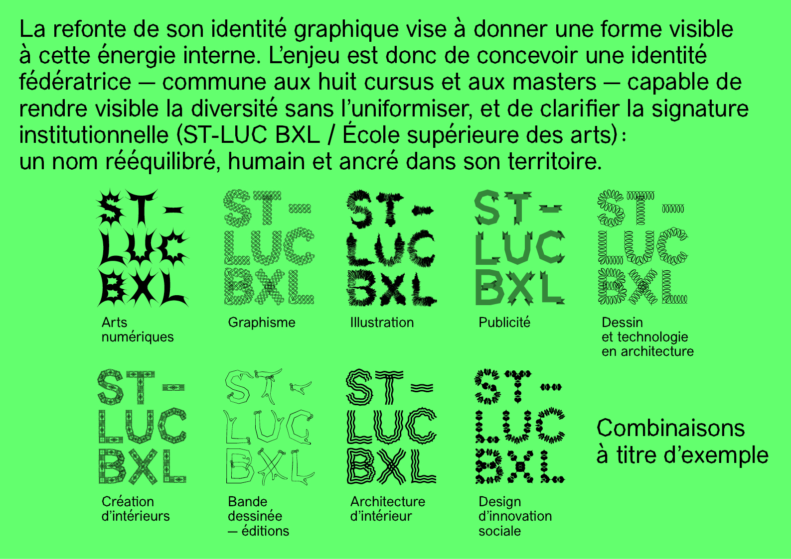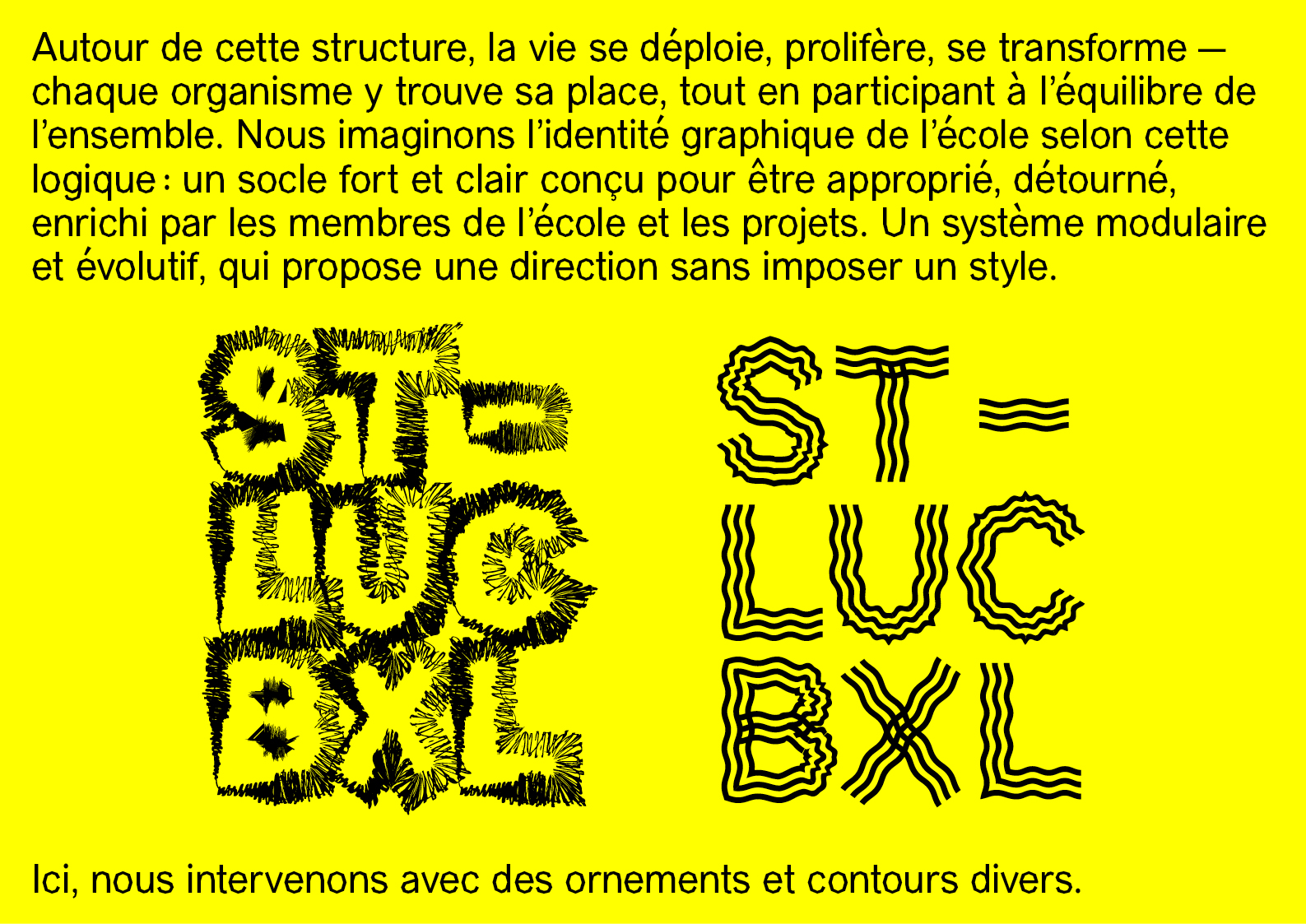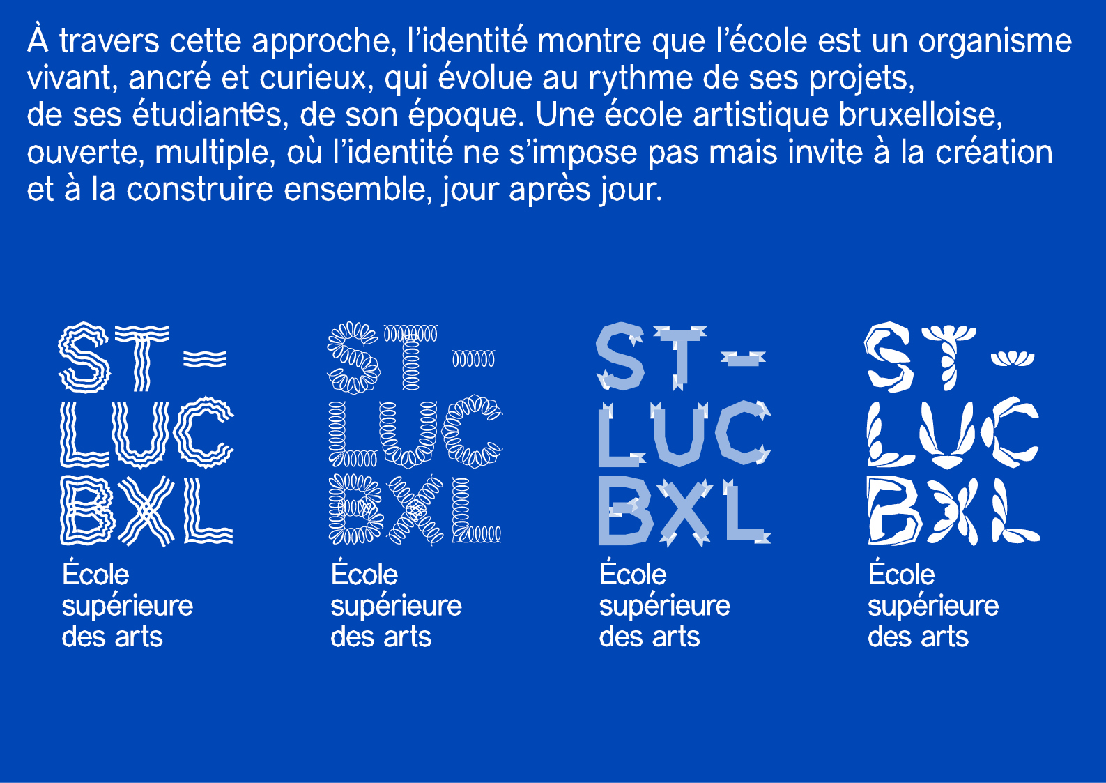 À l’image de l’école et de sa pédagogie, le nouveau logo et les principes de composition sont évolutifs et pluriels. Ils ont été pensés comme un outil commun que chacun·e pourra s’approprier pour accompagner les parcours qui nous attendent.